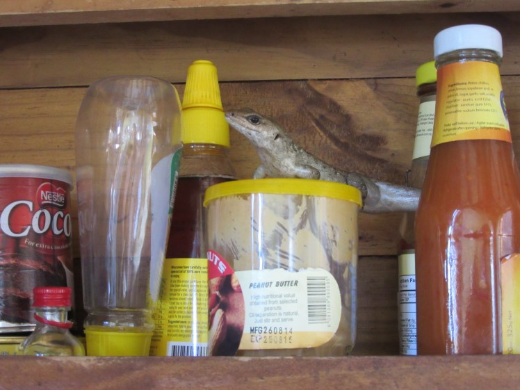 Round has one species of endemic snake, the Keel-scaled boa. It is a medium size snake with a total length of approx. 110 cm, it is also the island’s top predator. Searches for the boa are done at night and after days of hard work under the blistering sun it was a welcome change! Searches took about 2 hours, and involved walking along transect lines and recording species observed. Data such as time, duration of survey, temperature, wind strength, cloud cover, moon phase, amount of shade and rain etc was also recorded. I saw lots of Gunther’s gecko, Durrel’s Night gecko and the Ornate Day gecko but unfortunately no Keel-scaled Boa! After my last night survey, we had just arrived back to the field station when a juvenile boa dropped down from the kitchen ceiling! Unfortunately it slithered away before we could capture it, but I was glad to catch a glimpse of this beautiful snake.